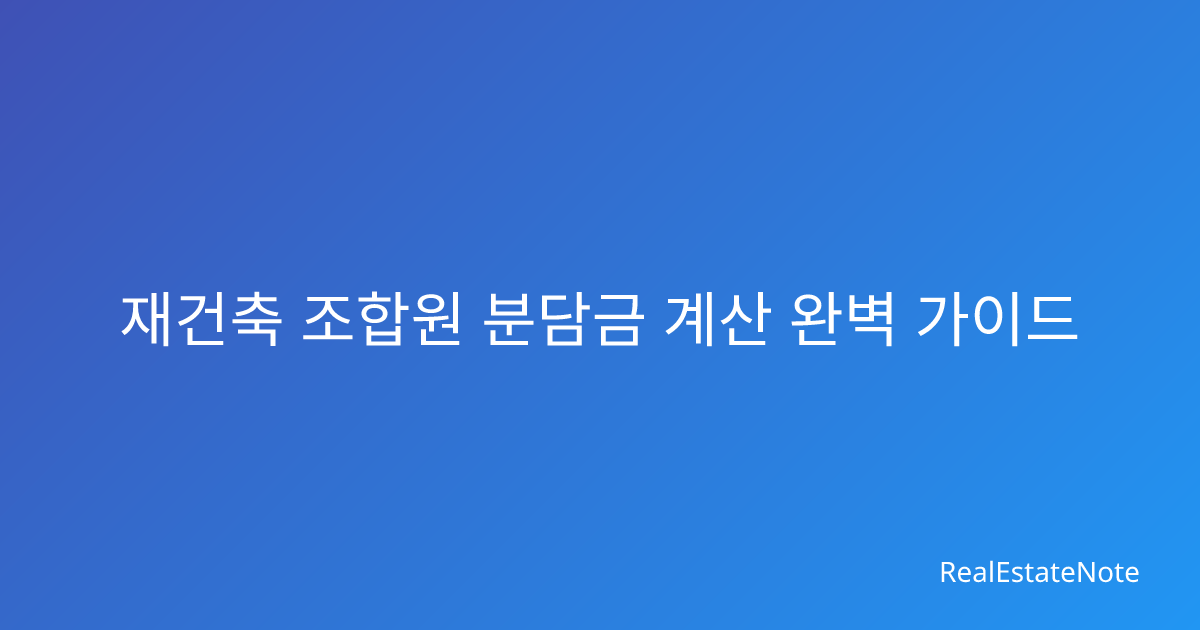 재건축을 앞두고 계신 조합원분들이 가장 궁금해하시는 것이 바로 분담금이죠? 최근 건축비 상승과 규제 변화로 분담금 계산이 더욱 복잡해졌는데요. 2026년 현재 기준으로 재건축 조합원 분담금 계산 방법을 단계별로 정리해드릴게요.
