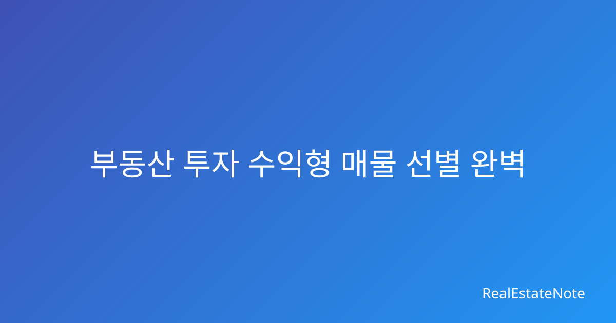 부동산 투자 수익형 매물 선별 완벽 가이드