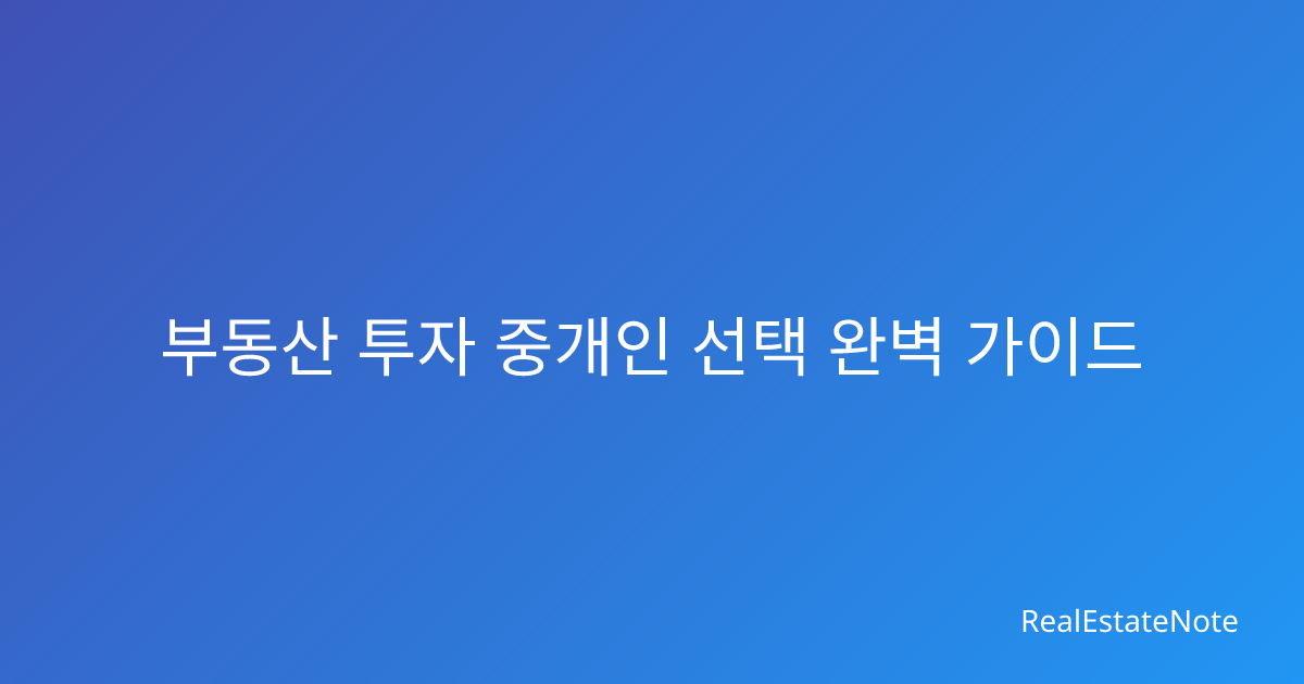 부동산 투자 중개인 선택 완벽 가이드 2026