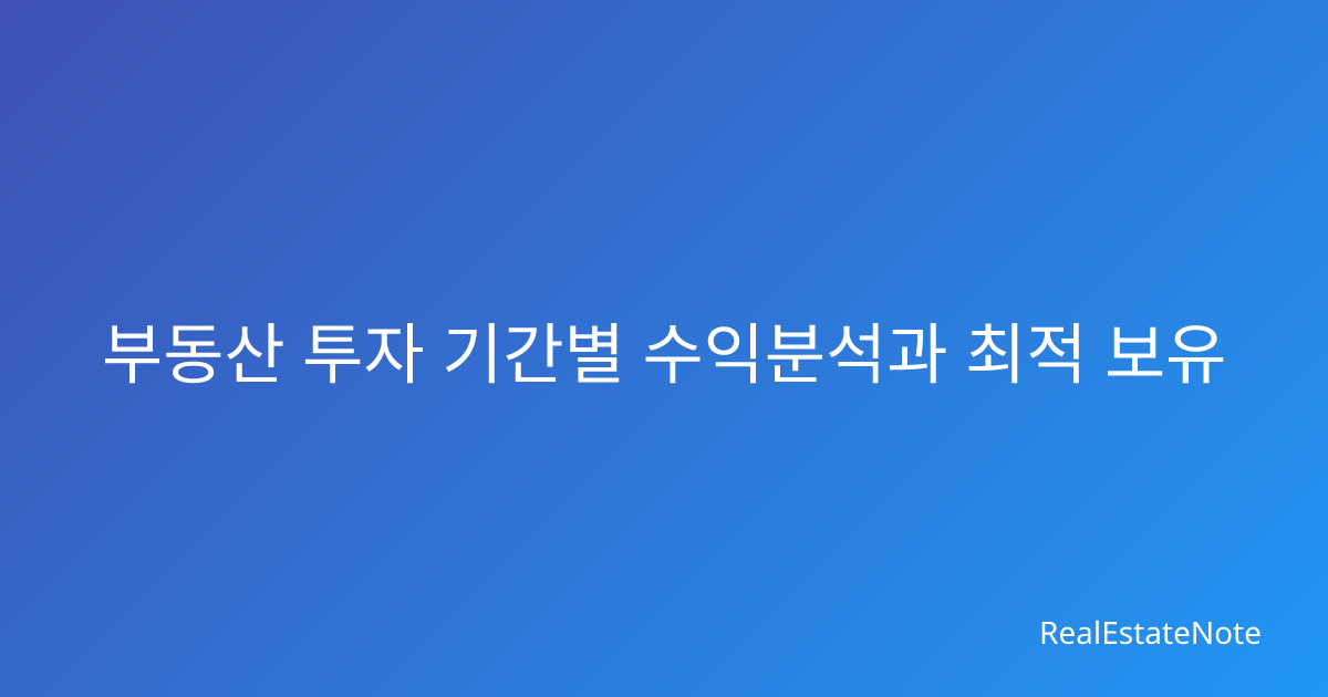 2026년 부동산 투자 기간별 수익분석과 최적 보유전략을 실제 데이터로 분석. 1년~10년 기간별 수익률과 세금, 지역별 특성을 고려한 투자전략 완벽 정리