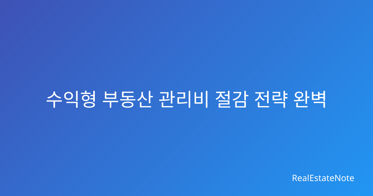 2026년 수익형 부동산 관리비 절감을 위한 실용적인 전략들을 소개합니다. 에너지 효율 개선부터 스마트 시스템까지 구체적인 방법과 효과를 정리했어요.