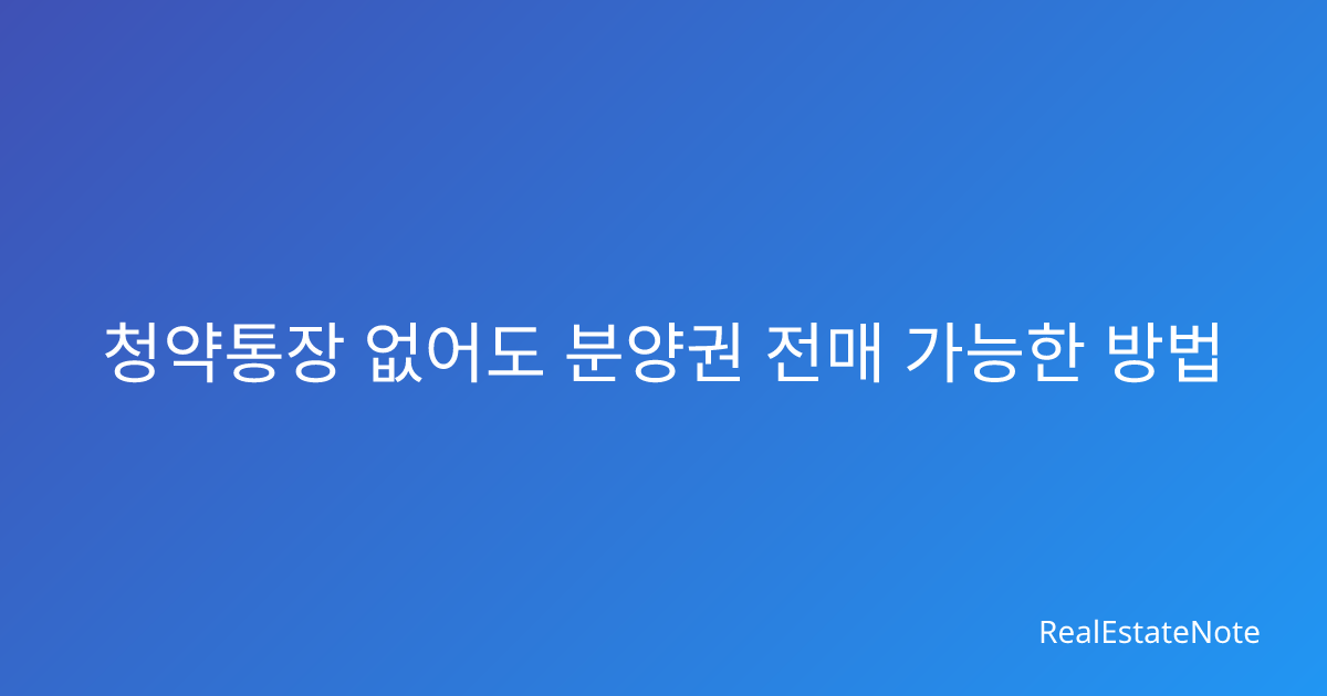 청약통장 없어도 분양권 전매 가능한 방법 청약통장이 없어서 새 아파트 분양에 참여하지 못해 아쉬워하고 계신가요? 분양권 전매라는 방법을 통해 청약통장 없이도 새 아파트를 구매할 수 있습니다. 분양권 전매는 기존 분양