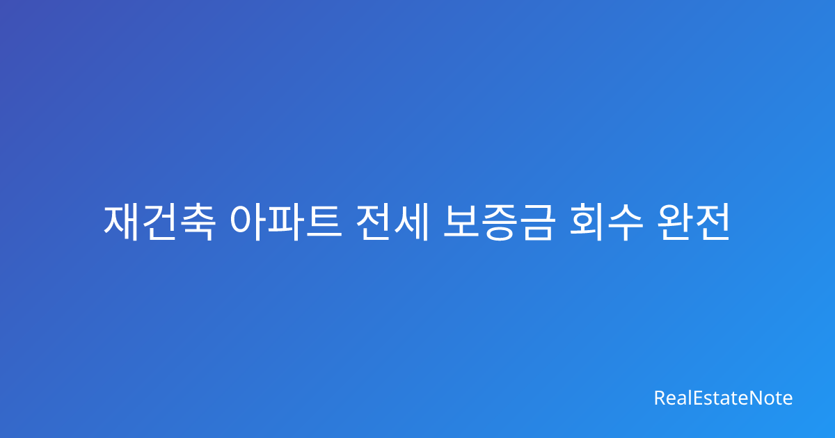 재건축 아파트 전세 보증금 회수 완전 정리 재건축이 예정된 아파트에서 전세로 살고 계시거나 전세 계약을 고려 중이신가요? 재건축이 확정되면 기존 세입자들은 이주해야 하는데, 이때 가장 걱정되는 것이 바로 전세 보증금