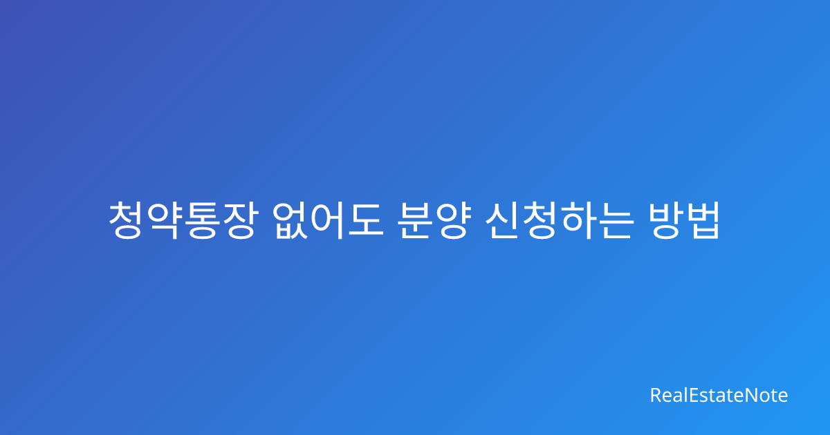 2026년 청약통장 없이 무주택자 분양 신청하는 완벽 가이드 새 아파트를 분양받고 싶은데 청약통장이 없어서 포기하셨나요? 많은 분들이 청약통장 없이는 분양 신청이 불가능하다고 생각하지만, 는 여러 가지 방법이 있습니