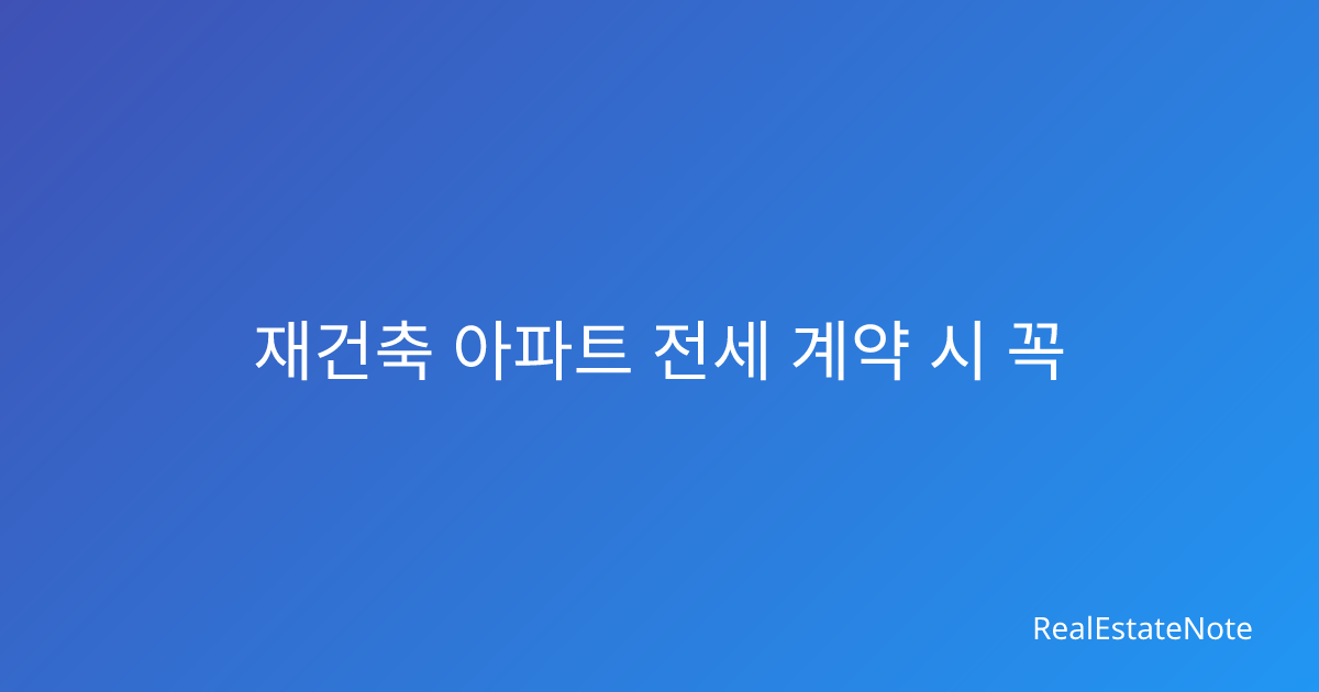재건축 아파트 전세 계약 시 꼭 알아야 할 주의사항 재건축 예정 아파트 전세 계약을 앞두고 계신가요? 일반 아파트와 달리 재건축 아파트는 철거 시점, 임시 거주 대책, 보증금 회수 등 복잡한 문제들이 얽혀 있어 신중